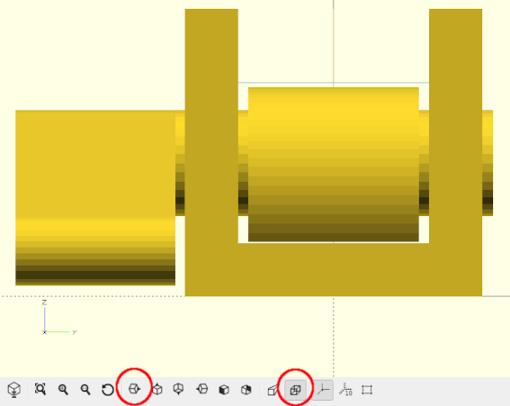 Da man OpenSCAD zu einem großen Teil eher mit der Tastatur als mit der Maus bedient, lohnt es sich, für häufig genutzte Funktionen die zugehörigen Tastenkombinationen zu erlernen. Die Tastenkombinationen werden - sofern vorhanden - in den Menüs auf der rechten Seite eines jeden Funktionseintrags dargestellt. Ein Teil der Funktionen wird auch in Form von Icons (dt. Symbolbildchen) auf der Programmoberfläche angeboten. Lässt man den Mauszeiger für einen kurzen Moment über einem solchen Icon stehen (ohne zu klicken), dann wird ein kleiner Erklärungstext sowie die zugehörige Tastenkombination der dargestellten Funktion angezeigt.