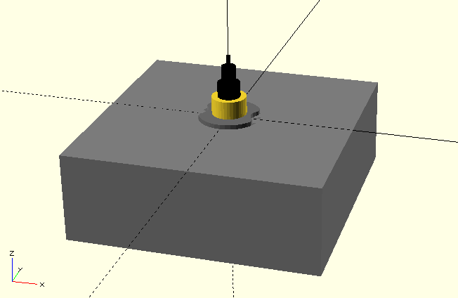 cylinder( d = bohrloch_durchmesser, h = platte.z + 2);