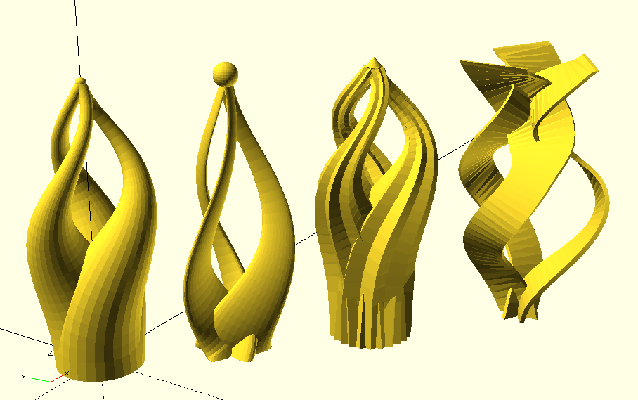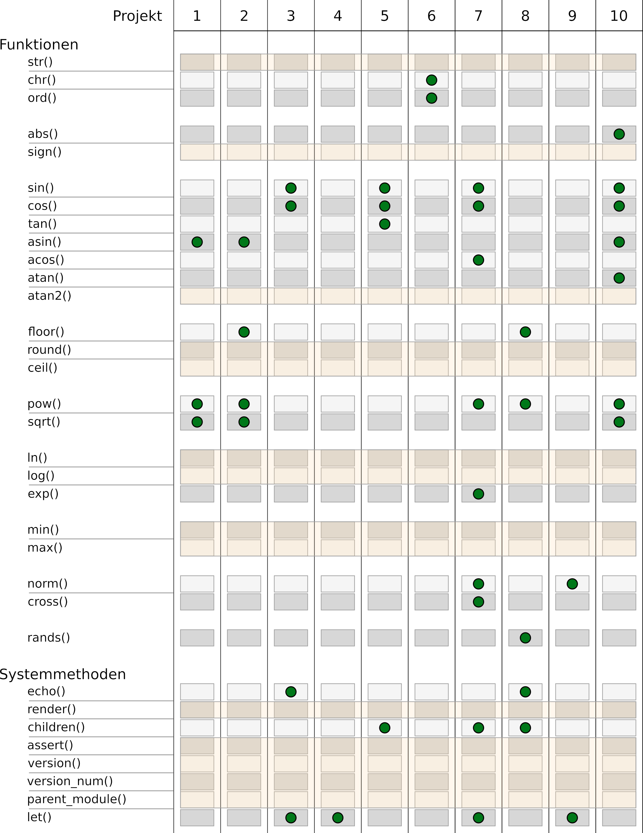 // Vereinigungfeld = [ for (i = ...) i ]; // Erzeugt ein Feld mittels For-Schleifeabsoluter Wert: abs()