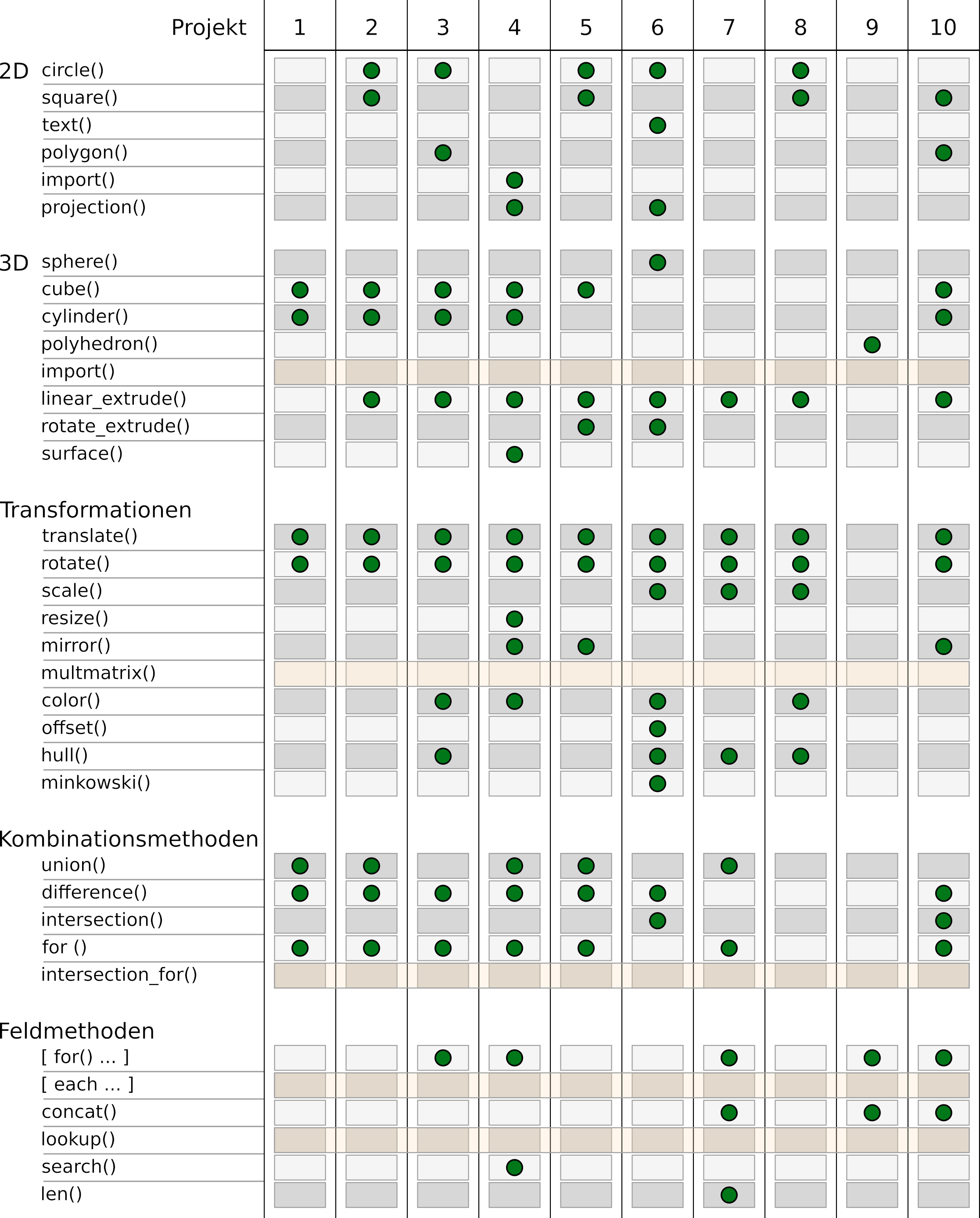 Die Beispielprojekte richten sich insbesondere an diejenigen, die dreidimensionale Objekte für ihren 3D-Drucker oder ihre CNC-Fräse konstruieren möchten. Gerade in diesem Anwendungsbereich glänzt OpenSCAD aufgrund der hohen Parametrisierbarkeit.
