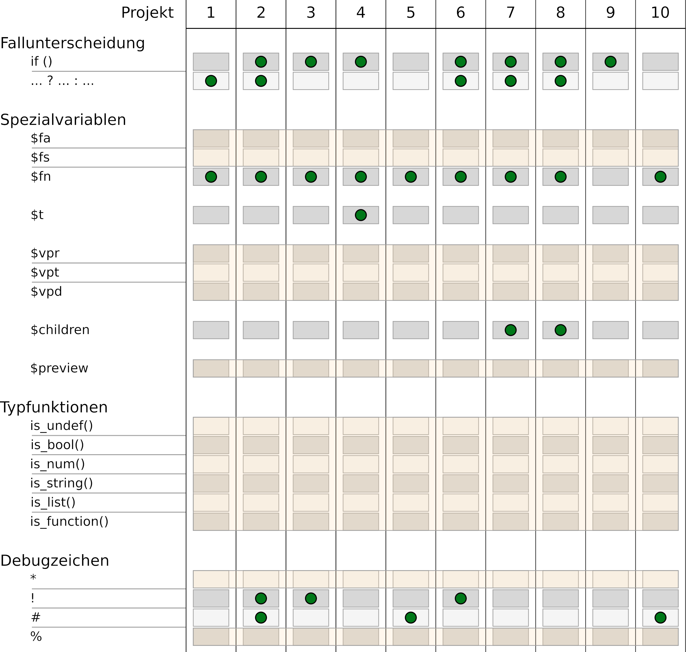 Bevor wir mit dem nächsten Abschnitt weitermachen, sollten wir kurz rekapitulieren, welche Grundbausteine wir kennengelernt haben: